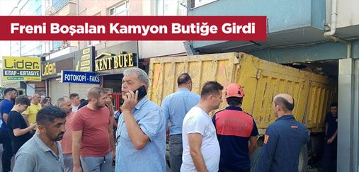 Karadeniz Ereğli ilçesi Bağlık Mahallesi'nde, freni boşalan bir kamyon kontrolden çıkarak önce iki araca, ardından bir butik mağazasına çarparak durabildi.