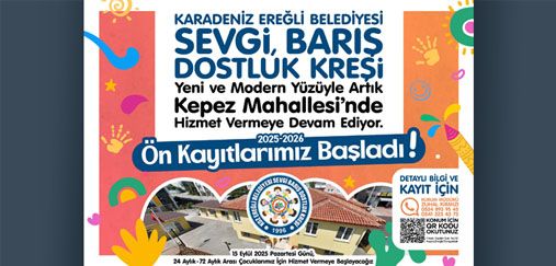 Kdz. Ereğli Belediyesi bünyesinde faaliyet gösteren Sevgi, Barış, Dostluk Kreşi, yenilenen yapısıyla Kepez Mahallesi’nde hizmete başlıyor.