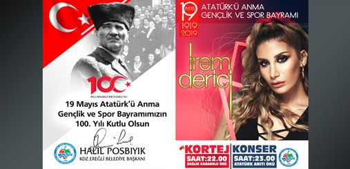 Kdz. Ereğli Belediye Başkanı Halil Posbıyık, 19 Mayıs Pazar günü saat 22.00’de Bağlık Karakolu önünden başlayacak “Büyük 100.Yıl Yürüyüşü” ve ardından saat 23.00’de gerçekleşecek İrem Derici konserine Ereğli ve tüm bölge halkını davet etti.