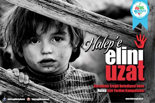 Kdz.Ereğli Belediyesi Halep için yardım kampanyası başlatıyor. Belediye Başkanı Hüseyin Uysal, ‘Siyasi partilerimiz, sivil toplum kuruluşlarımız ve halkımızı Halep için birlikte olmaya davet ediyorum’ çağrısı yaptı.