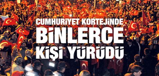 CUMHURİYET KORTEJİNDE BİNLERCE KİŞİ YÜRÜDÜ