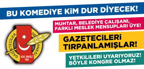 BÖYLE KONGRE OLMAZ! YASAL SORUNLAR VAR! MUHTAR, BELEDİYE ÇALIŞANI, FARKLI MESLEK MENSUPLARI ÜYE, GERÇEK BASIN EMEKÇİLERİ VE SARI BASIN KARTI SAHİBİ GAZETECİLERİ ÜYELİKTEN ATMIŞLAR! BU KOMEDİYE BİRİ DUR DEMELİ!