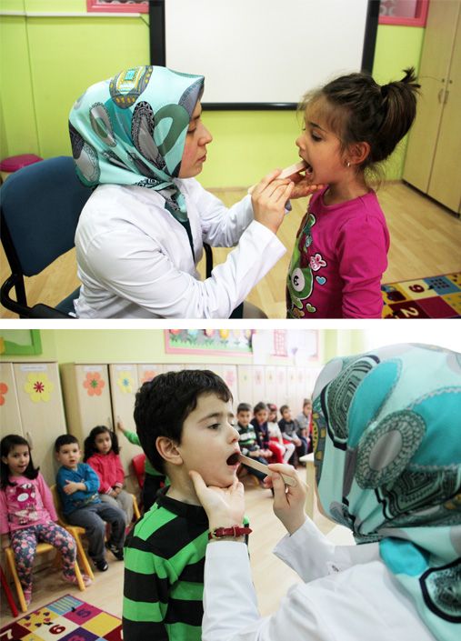 Ereğli'de faaliyet gösteren Özel Gonca Kreş ve Gündüz Bakımevi öğrencileri diş taramasından geçirildi.