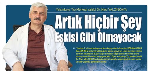 "Yaklaşık 2 yıl önce başlayan ve tüm dünyayı etkisi altına alan KORONAVİRÜS SALGINININ sonlarına yaklaştığımız günleri yaşıyoruz. Lakin bu salgın insanlık tarihinin yaşadığı en büyük salgın olmuştur. Doğal olarak ta kontrol altına alınmış olsa dahi etkileri hep yaşayacağız." Diyen Yalçınkaya Tıp Merkezi sahibi Dr. Naci YALÇINKAYA bundan sonra insanlığın yaşam şeklinin nasıl olması ve neler yapması gerektiğini anlattı.