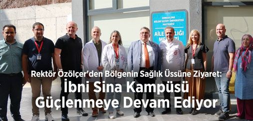 Zonguldak Bülent Ecevit Üniversitesi (BEUN) Rektörü Prof. Dr. İsmail Hakkı Özölçer, üniversitenin sağlık alanındaki gelişmelerini yerinde görmek üzere İbni Sina Kampüsünü ziyaret etti. Ziyarette; Aile Sağlığı Merkezi, BEUN Hastanesi ve Ahmet Erdoğan Sağlık Hizmetleri Meslek Yüksekokulundaki çalışmaları yerinde gözlemleyen Rektör Prof. Dr. Özölçer, yürütülen projeler hakkında yetkililerden detaylı bilgi aldı.