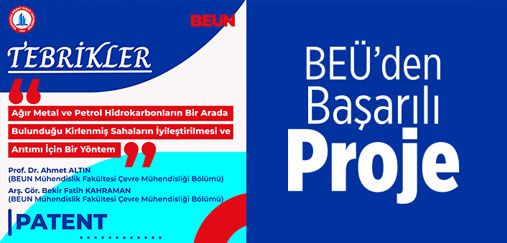 Zonguldak Bülent Ecevit Üniversitesi (BEUN) Mühendislik Fakültesi Çevre Mühendisliği Bölümü Öğretim Üyesi Prof. Dr. Ahmet Altın ve Arş. Gör. Bekir Fatih Kahraman’ın buluş sahibi olduğu “Ağır Metal ve Petrol Hidrokarbonların Bir Arada Bulunduğu Kirlenmiş Sahaların İyileştirilmesi ve Arıtımı İçin Bir Yöntem” başlıklı proje, patent almaya hak kazandı.
