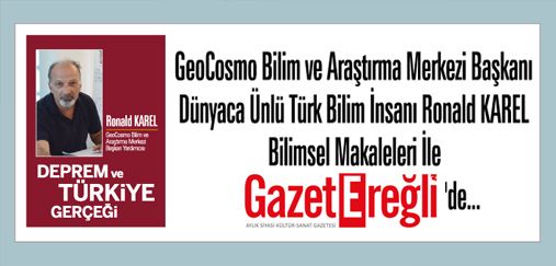 GeoCosmo Bilim ve Araştırma Merkezi Başkanı Dünyaca Ünlü Türk Bilim İnsanı Ronald KAREL Bilimsel Makaleleri İle artık Gazete Ereğli'de...